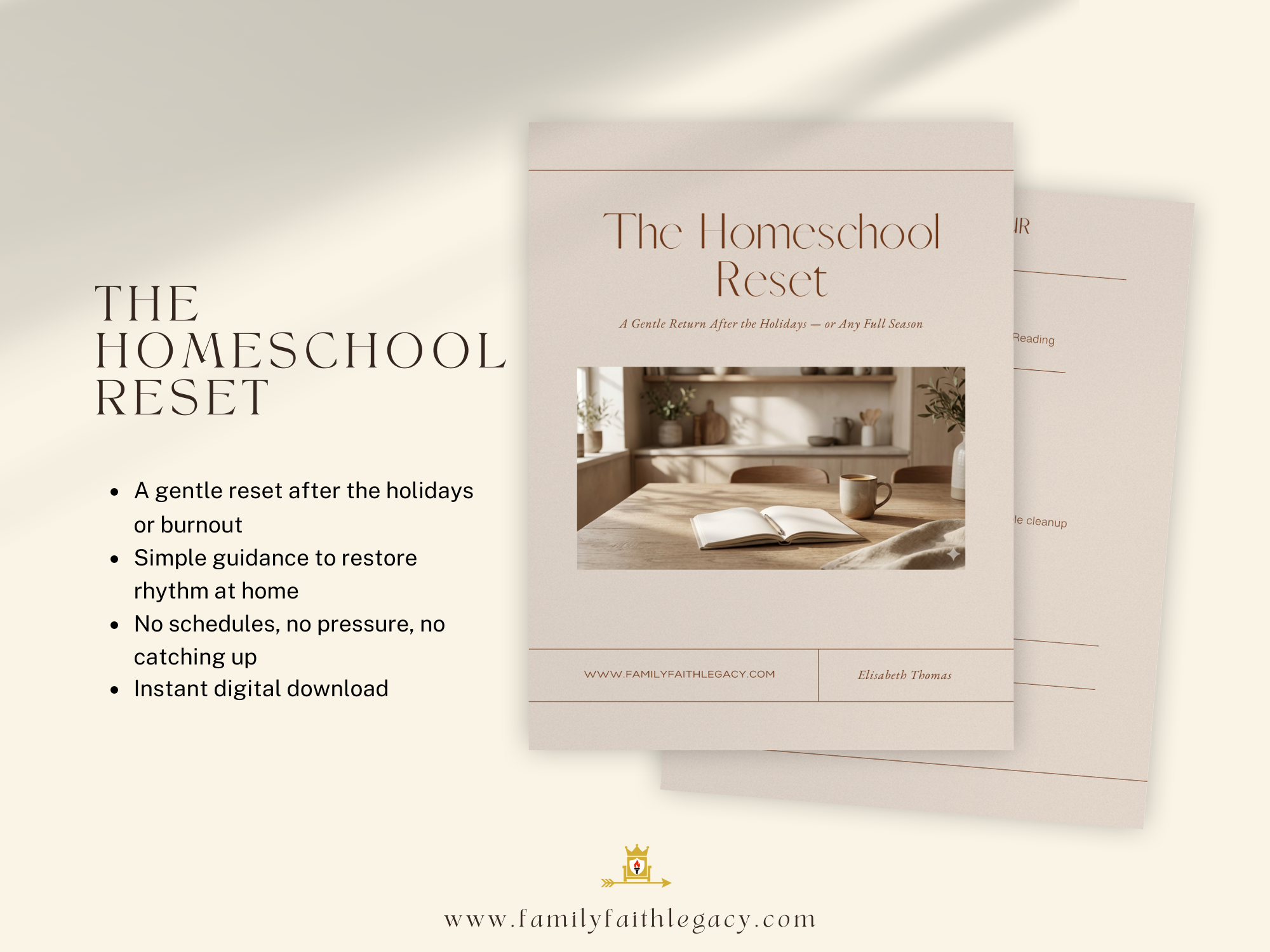The Homeschool Reset gives you permission to pause, reset, and return to your homeschool rhythm without pressure.